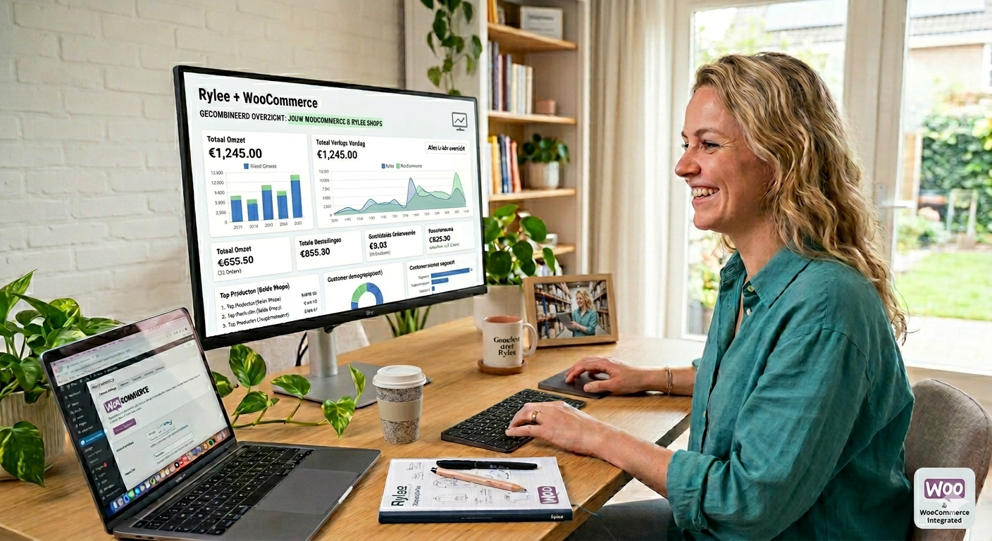 Je ziet niet alleen wat je verkoopt, maar ook wat je daadwerkelijk overhoudt. Dit maakt het eenvoudiger om winstgevende keuzes te maken. 2. Tijdsbesparing Doordat data automatisch wordt gesynchroniseerd, bespaar je uren aan handmatig werk. 3. Betere besluitvorming Met realtime data kun je sneller schakelen en beter inspelen op trends en prestaties. 4. Schaalbaar werken Of je nu één webshop hebt of meerdere verkoopkanalen: je behoudt overzicht en controle. 5. Alles in één dashboard Geen losse tools meer nodig voor analytics, rapportages en inzichten. Voor wie is deze koppeling interessant? De WooCommerce koppeling met Rylee is ideaal voor: E-commerce ondernemers die groeien Webshops die verkopen via meerdere kanalen Ondernemers die meer grip willen op hun cijfers Iedereen die efficiënter wil werken met data