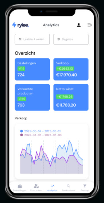 Rylee houdt je voorraadniveaus in de gaten en stuurt een melding zodra een product onder een ingestelde minimumwaarde zakt. Waarom dit waardevol is: Je voorkomt dat populaire producten uitverkocht raken. Bestel tijdig nieuwe voorraad of verhoog tijdelijk je prijs om voorraad beter te beheren en omzetverlies te voorkomen.