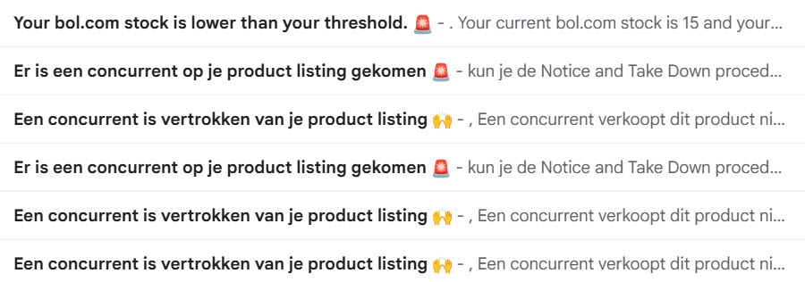 Krijg een melding zodra een andere verkoper zich toevoegt aan een listing waarop jij actief bent. Waarom dit waardevol is: Verkoop je een product van jouw eigen merk en heb je anderen geen toestemming gegeven om het te verkopen? Dan kun je via Rylee direct actie ondernemen of melding maken bij Bol. Dit helpt je om jouw merk te beschermen en ongewenste verkopers te weren.